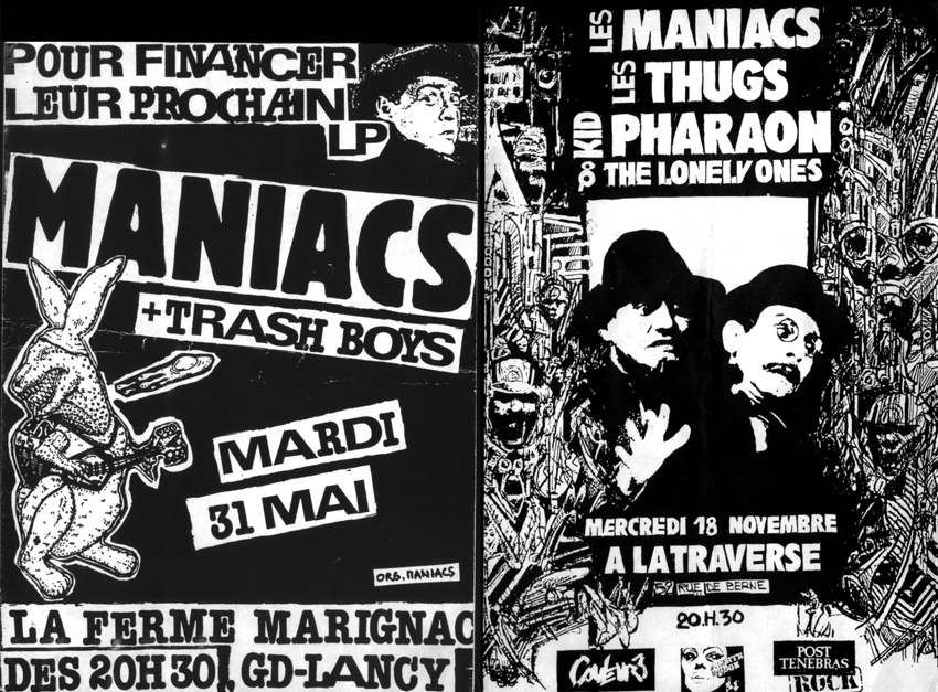 La légende dit qu’ils se seraient rencontrés à Genève sur les marches d’une église. Oui parce qu’on ne vous l’a pas encore dit mais les MANIACS sont suisses, de ceux qui, comme gage, vous balance au fond du lac parce que vous avez osé dire que « Gloria » est un morceau de Jim Morrison. Car de leurs expériences précédentes (Yodler Killers, Rocky Feller et ses Millionaires), ils ont gardé l’amour des racines, de celles qu’ils n’arrêteront jamais de revendiquer. Retour donc au début des années 80 où, après une période de recherche de stabilité, Alex JACQUES (chant), Thierry SARTORETTI (guitare), Alain CROUBALIAN (basse), Stéphane REYNAUD (batterie) et Patrick PERAY (orgue, harmonica) décident de monter la Secte des Maniacs, organe politico-communiquant du groupe, et d’aller porter la bonne parole du punk’n roll très largement hors de leurs frontières. Parce que la Suisse, c’est super mais on on en a vite fait le tour quand on a écumé les salles et les squatts de Genève, Lausanne, Zurich et Bâle !