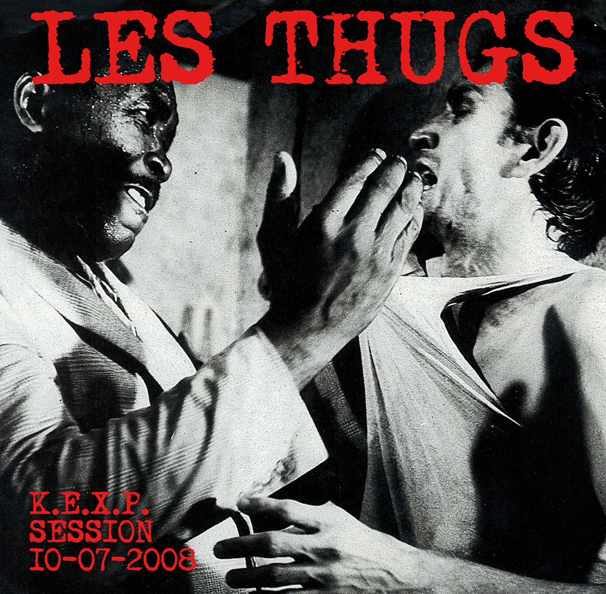 “ (…) K.E.X.P. Session 10-07-2008 (Slow Death records) propose quatre chansons tirées d’un live radio à Seattle programmé à l’occasion du festival Sub Pop (en 2008 – ndr) pour les vingt piges de l’honorable maison. A la demande des patrons du label, le festival fut prétexte à de nombreuses reformations parmi lesquelles, Les Thugs. Ce qui nous a permis, à nous Français, de les voir sur une poignée de dates (cf. le No Reform Tour de 2008 – ndr) puisque les Angevins ne voulaient pas se pointer à Seattle comme ça, la fleur au manche de guitare après dix ans d’interruption. Ils devaient se refaire la main, d’où une résidence à La Nef à Angoulême et une tournée française dans la foulée pour se remettre en jambes avant de rejoindre les hordes sauvages à Sub Pop City.