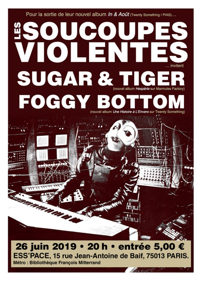 A l’occasion de la sortie de leur nouvel album In & Août (Twenty Something), Les Soucoupes Violentes se produiront à Paris le 26/06/2019 à l’ESS’Pace (Paris 13e).