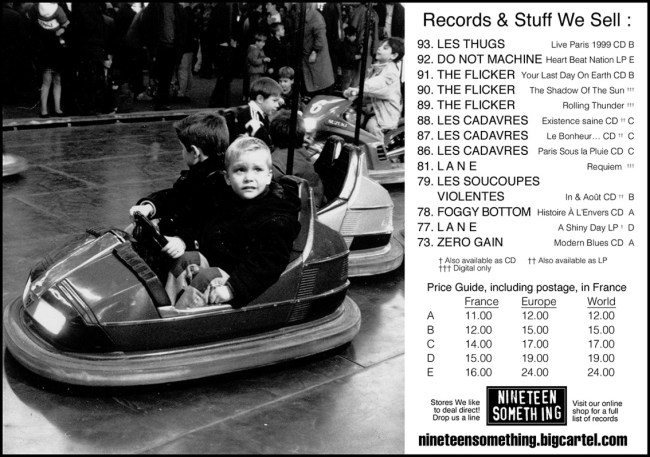 09/10 – Sortie des rééditions du groupe Les Cadavres : Existence Saine (LP/CD), Le Bonheur c’est Simple Comme un Coup de Fil (LP/CD) et Paris Sous la Pluie (CD) sur Nineteen Something, en coproduction avec Dirty Punk Records et Archives de la Zone Mondiale