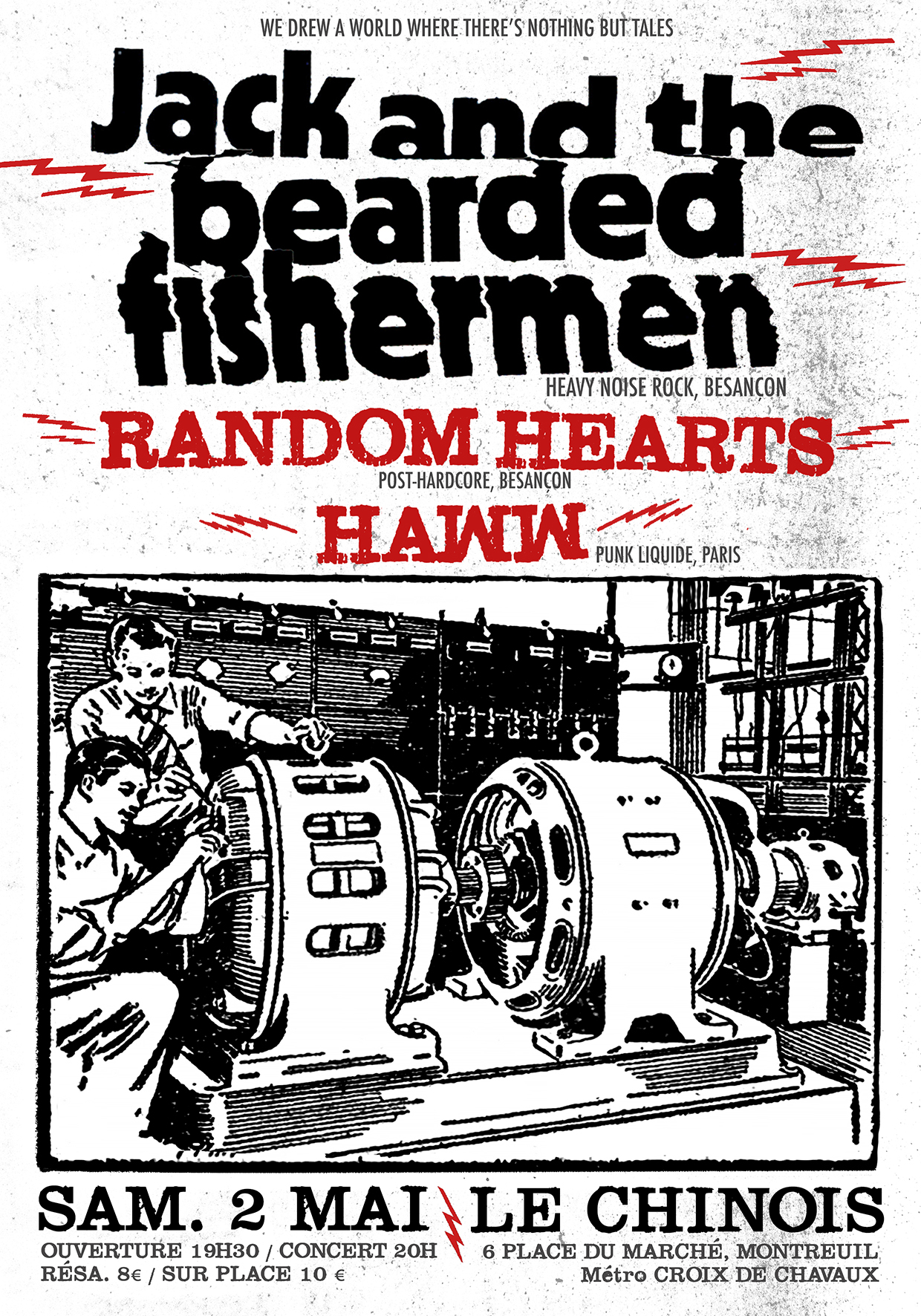 Jack And The Bearded Fishermen sera accompagné d’un autre groupe bisontin, Random Hearts et de Haww, formation parisienne dont la présentation (”Punk liquide”) intriguera suffisant pour ne pas la rater.
